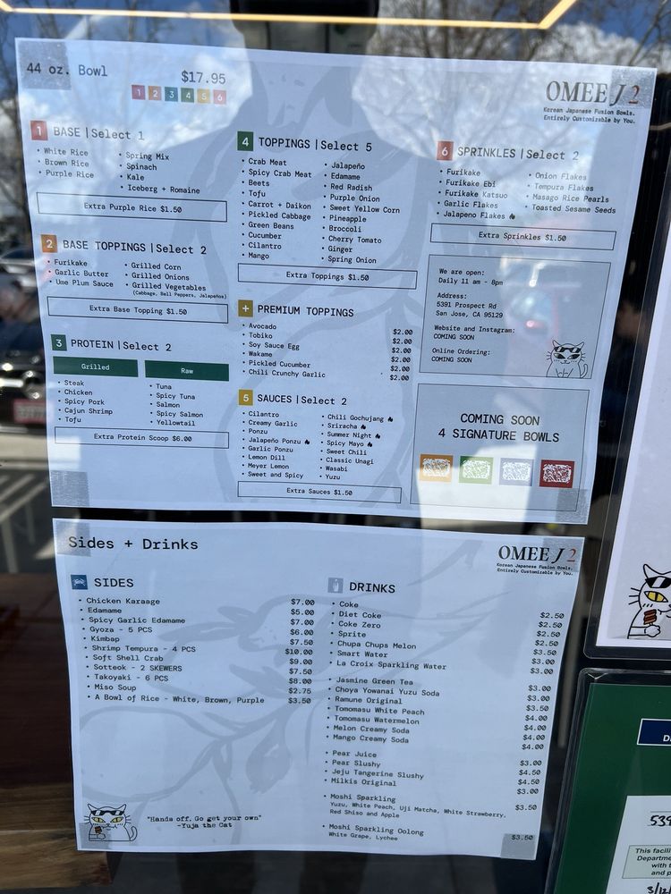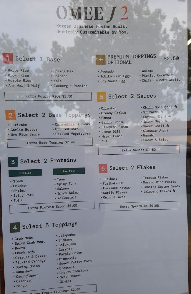 Omee J 2, a Japanese-Korean fusion restaurant in San Jose, CA, offers a wide range of menu options with vegan and vegetarian choices. Customers rave about the build-your-own bowl concept, where they can customize their meals with fresh ingredients and flavorful sauces. The portions are generous, and there are plenty of options for proteins, toppings, and sauces to create a satisfying and healthy meal.