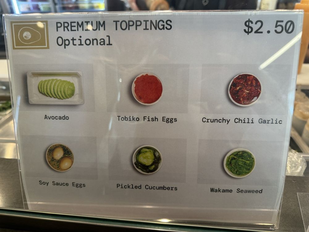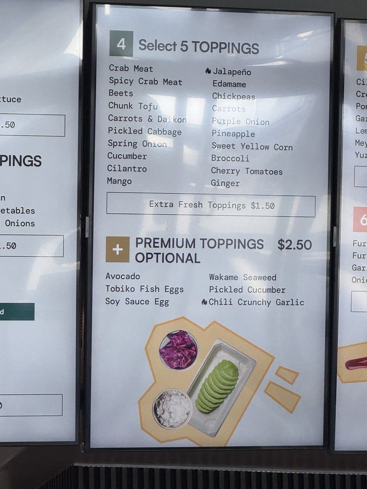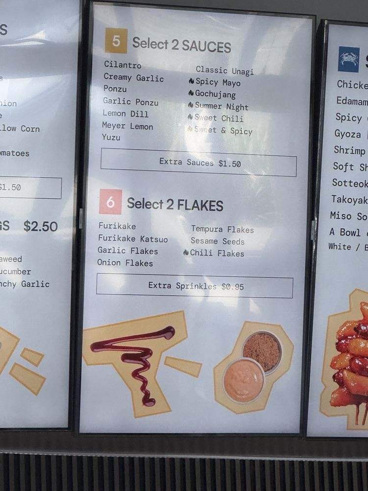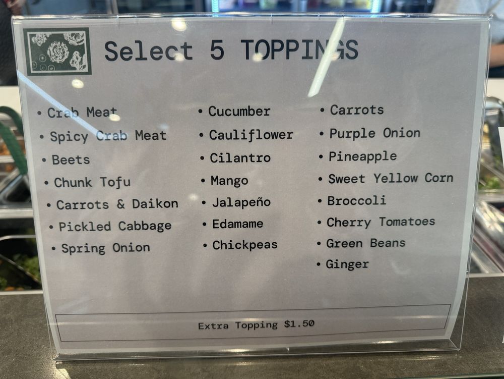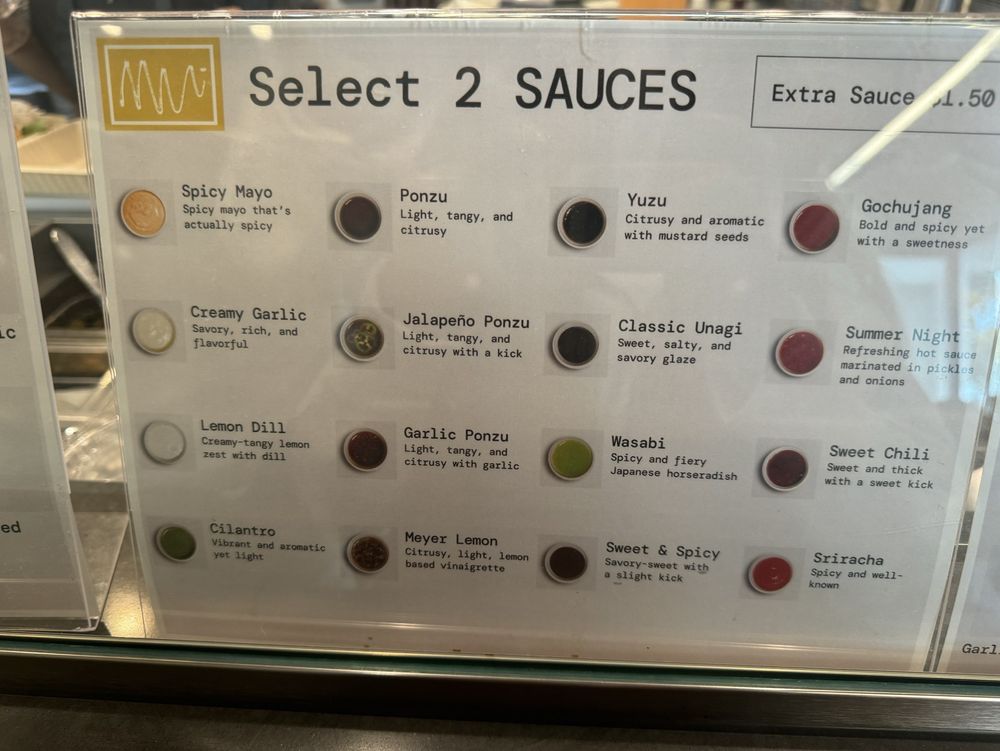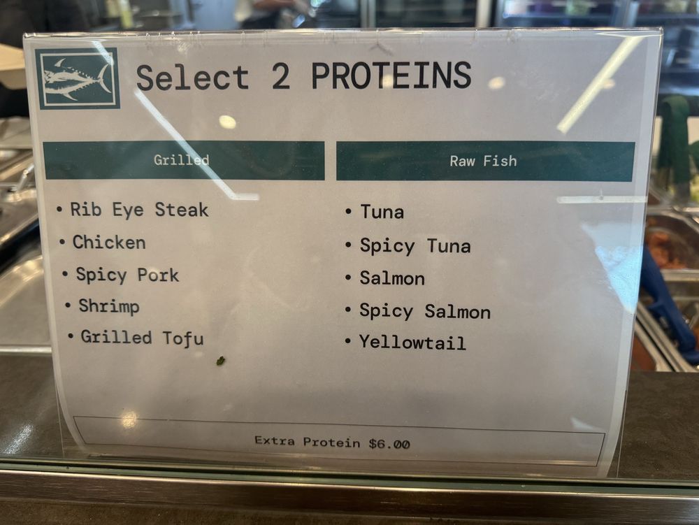 Create your own customizable bowl with your base, base toppings, proteins, toppings, sauces, and sprinkles.