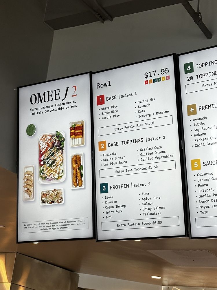 Highlights of the menu include the chicken karaage, skewers with rice cakes and sausage, and the variety of poke bowl combinations. The purple rice, known for its antioxidant properties, adds a unique twist to traditional poke bowls. Overall, Omee J 2 stands out for its fresh ingredients, fast service, and casual yet trendy ambiance. With a focus on quality and variety, this restaurant is a must-visit for poke bowl enthusiasts and those looking for a healthy dining option.